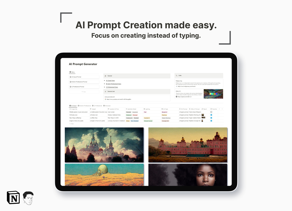 No need to type anything in Midjourney or DALL-E, just copy and paste from Notion to the AI software.